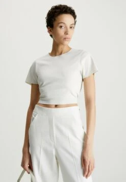 Calvin Klein Slim Scuba Open Back – T-Shirt Print – Chalk