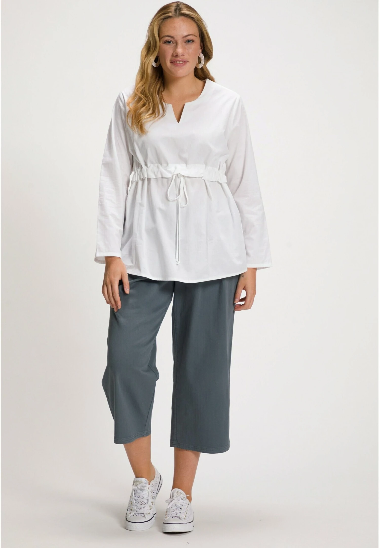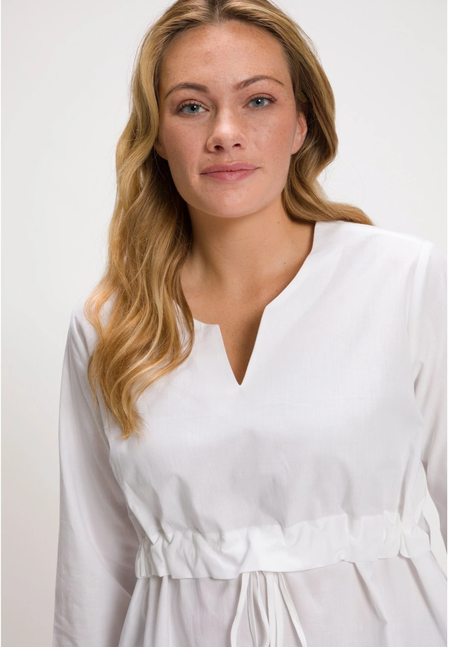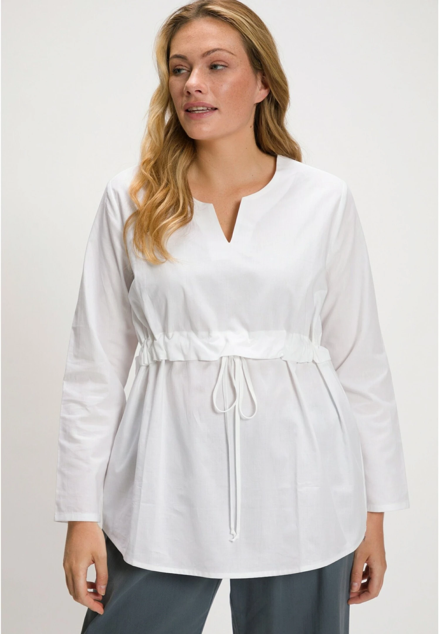 Ulla Popken Cordon Silhouette Trapèze Manches Longues – Tuniek – Blanc Neige