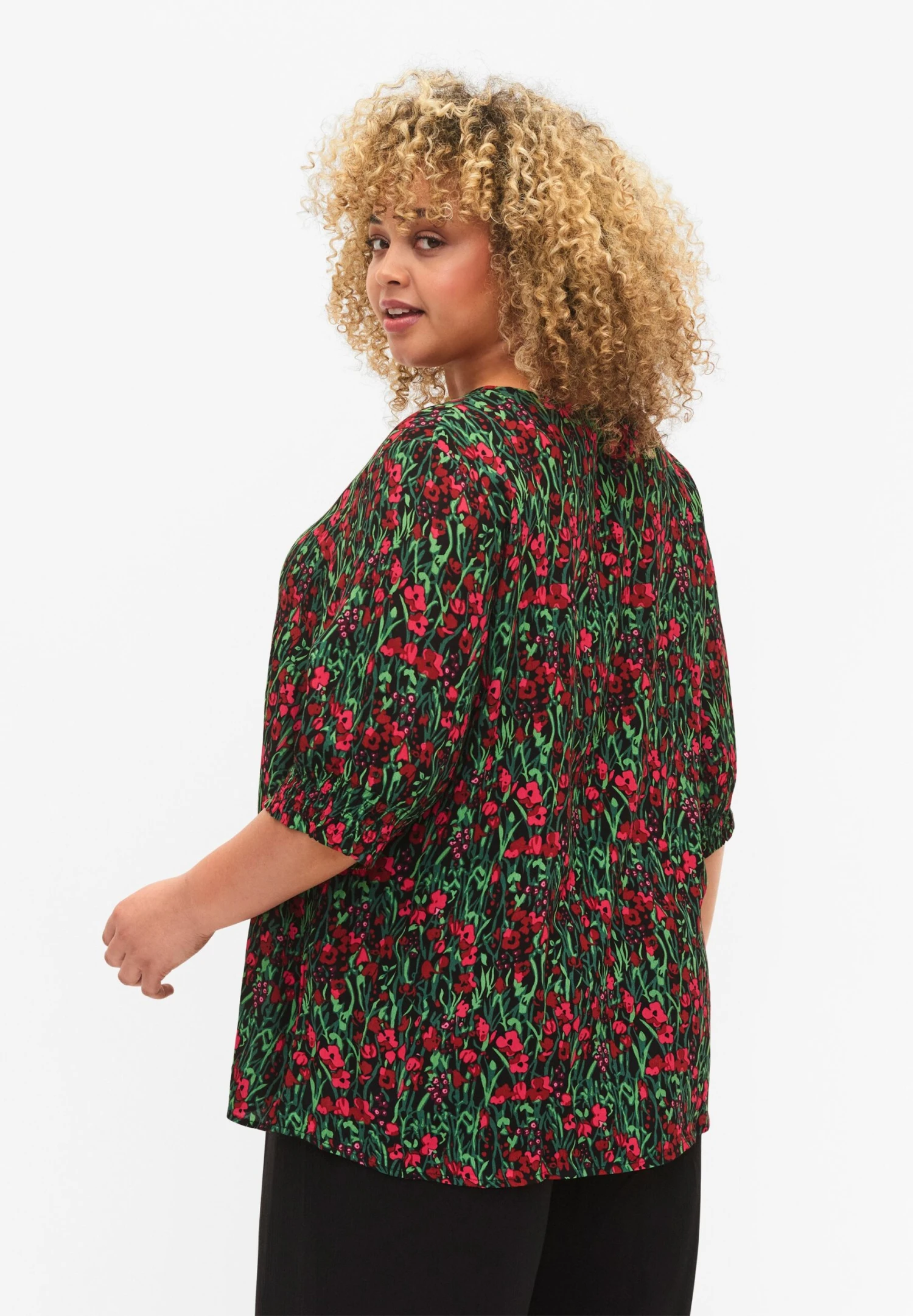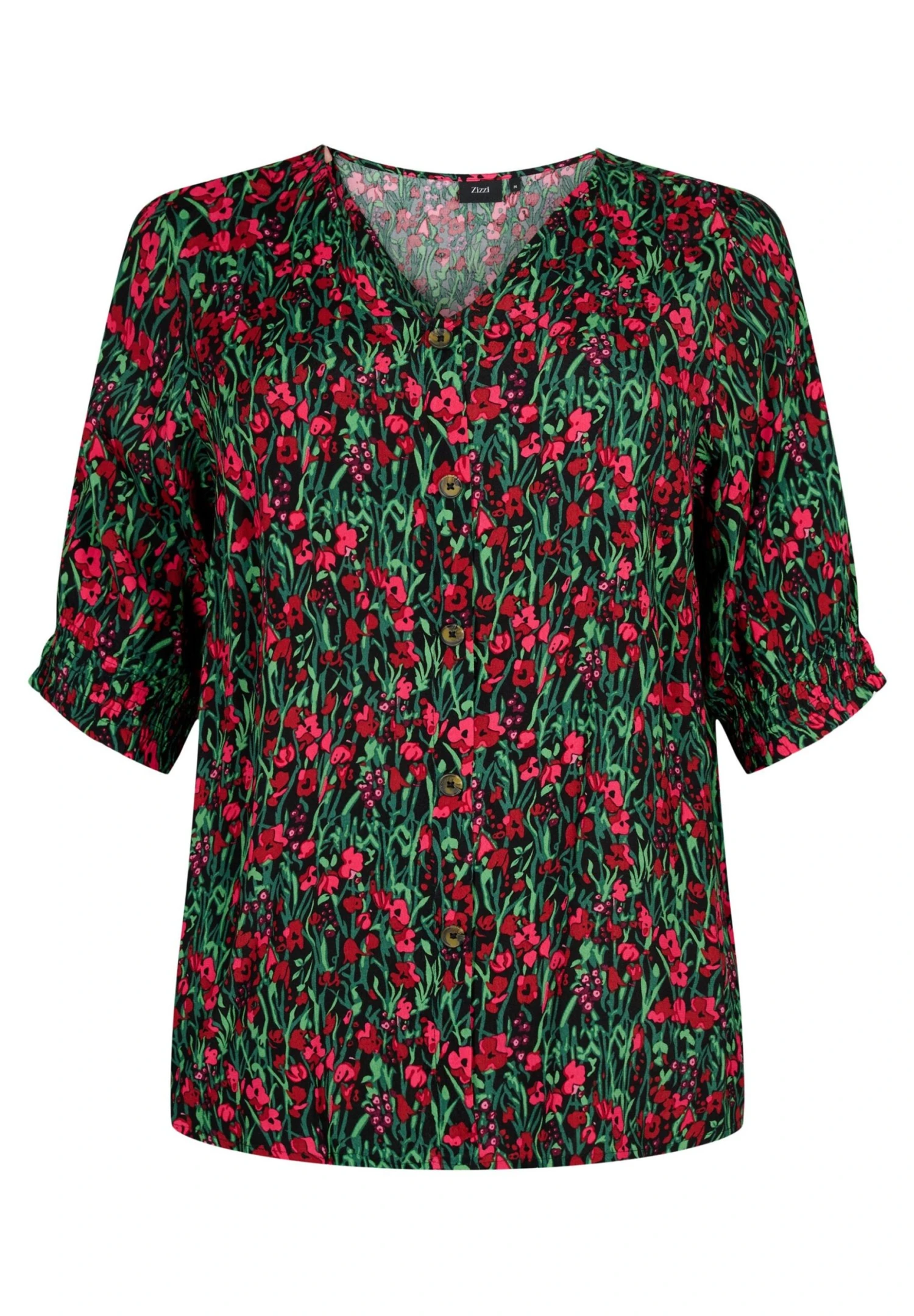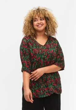 Zizzi Mit Knöpfen – Blouse – Black W Pink Flower