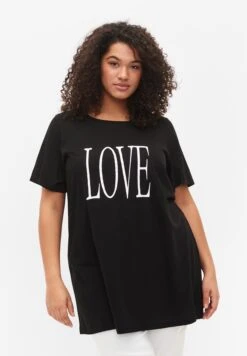 Zizzi OversizeMit Druck – T-Shirt Print – Black W Love
